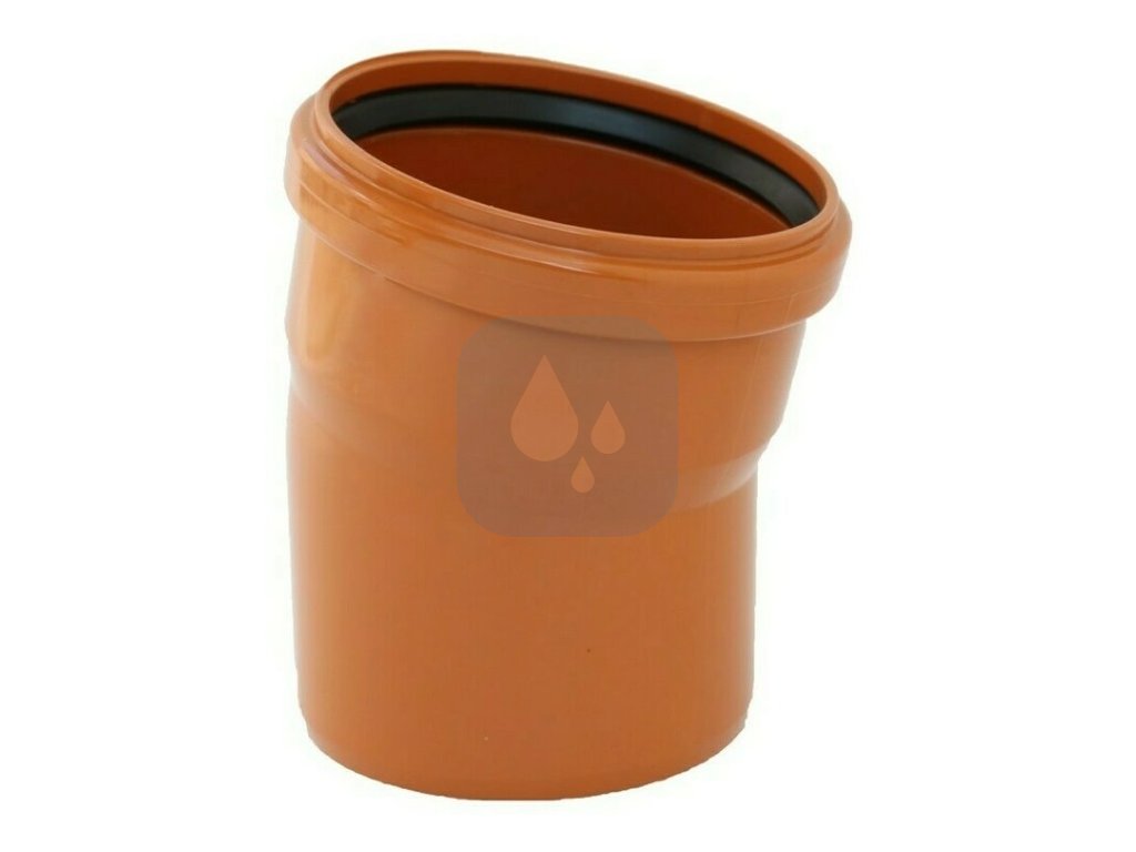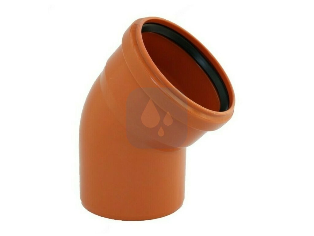 KG Koleno DN 100 - 15°, 30°, 45°, 67,5°, 87,5° je plastový potrubní systém určený pro beztlakové kanalizační sítě a přípojky uložené v zemi. Jedná se o ucelený systém výrobků z trubek a tvarovek z (PVC) materiálu, vyznačuje se vysokou odolností vůči vnitřním i vnějším chemickým vlivům a lehce se napojí na běžně používané typy odpadních potrubí. Snadná montáž prováděná spojováním hladkých konců a hrdel s těsnícím kroužkem zaručuje rychlou instalaci.